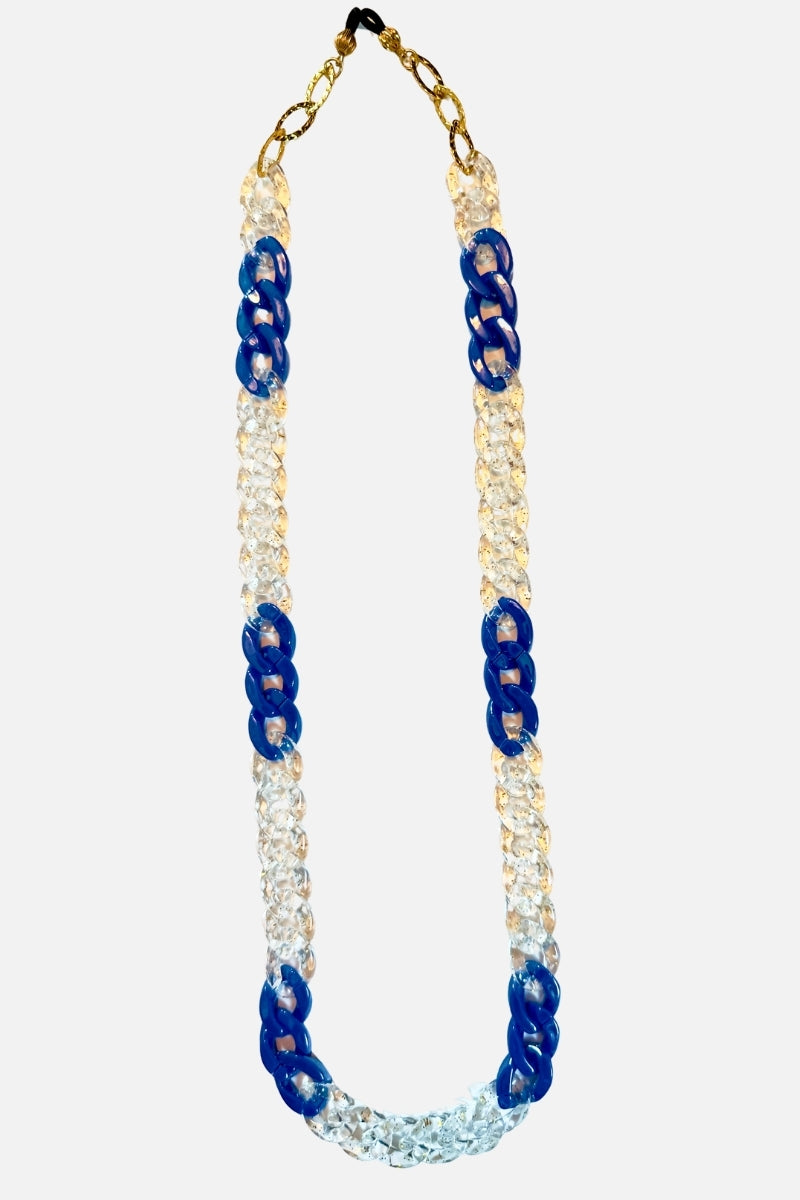 - Glossy blue & clear with gold glitter curb links