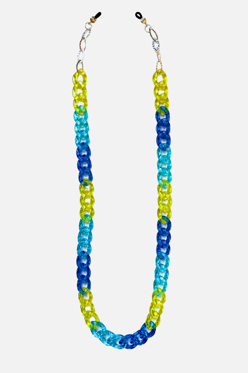 - A mix of turquoise, royal blue and yellow glitter acrylic curb links