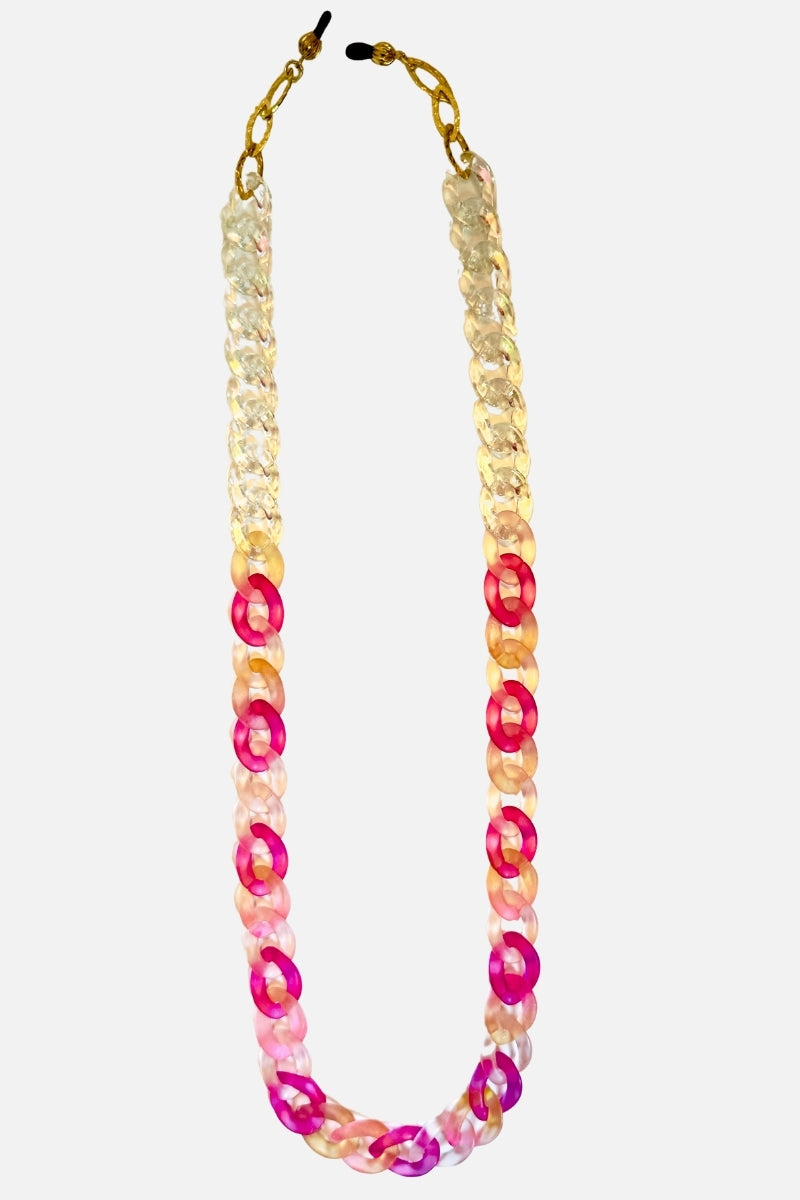 - A mix of frosted pinks, peach & translucent acrylic curb links