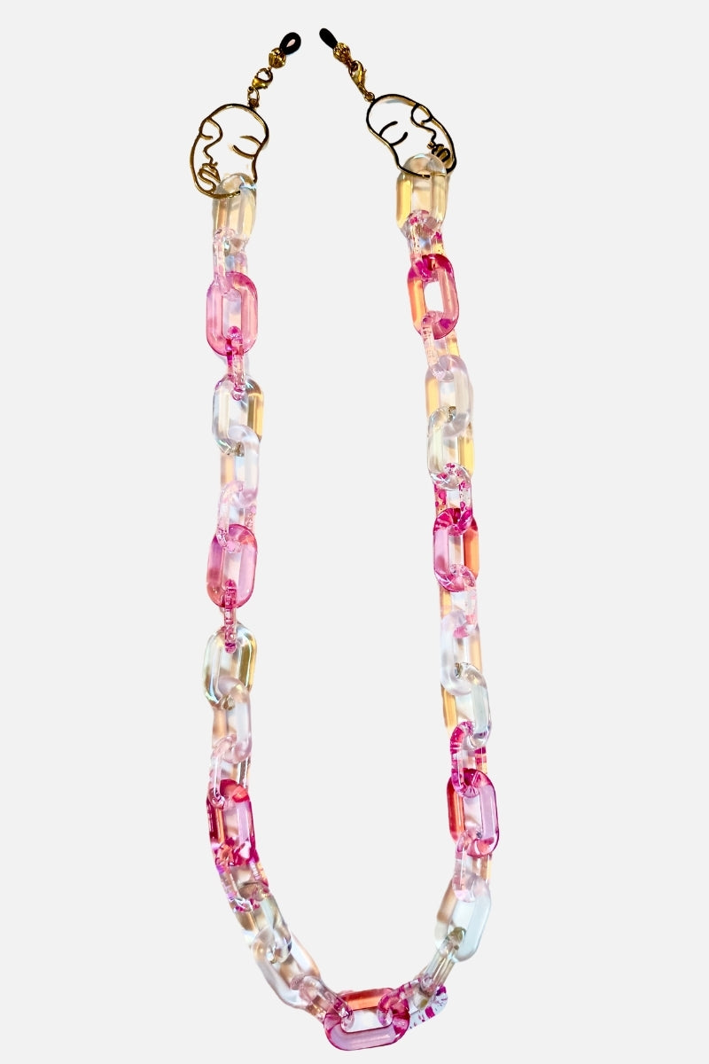 - A mix of clear, pink, and paint splashed acrylic links