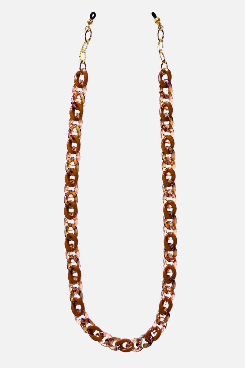 - A mix of glossy, iridescent & translucent brown acrylic curb links