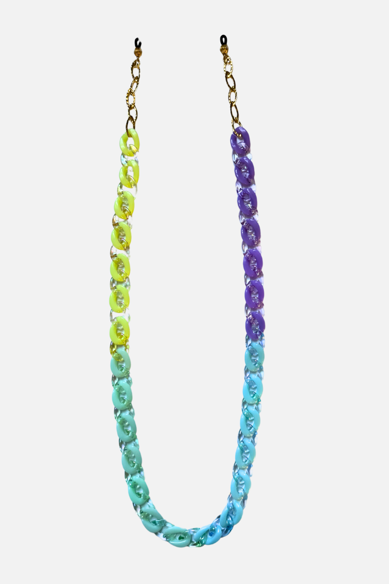 - A mix of glossy and iridescent lime, sea green and aqua acrylic curb links