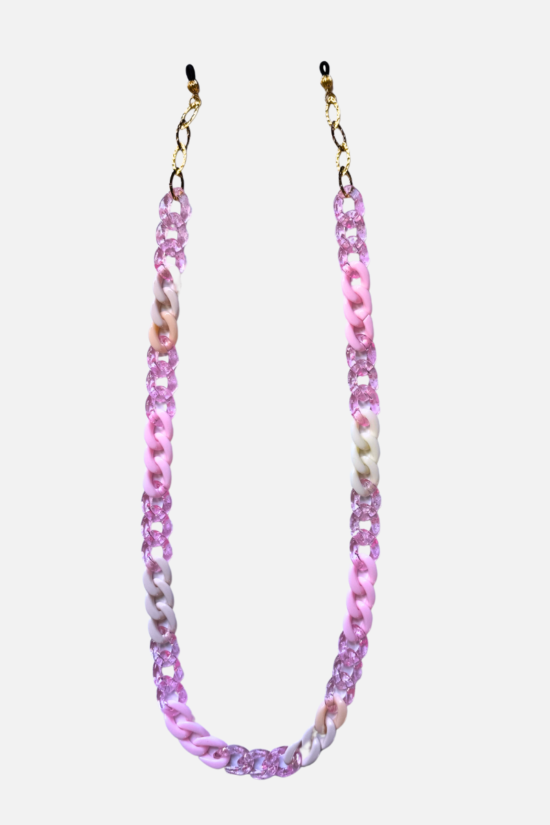 - A mix of glossy cream, light pink and pink glitter acrylic curb links