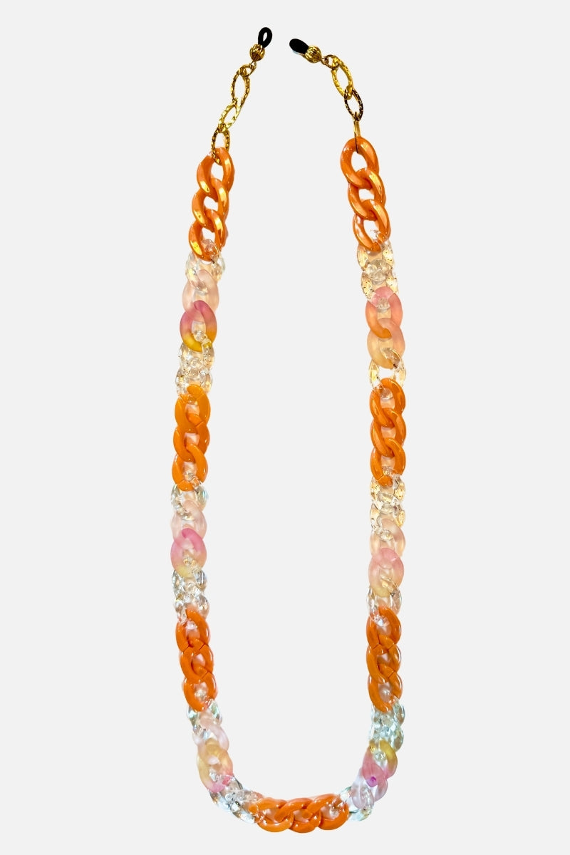 - A mix of glossy orange, matte peach, and gold glitter acrylic curb links