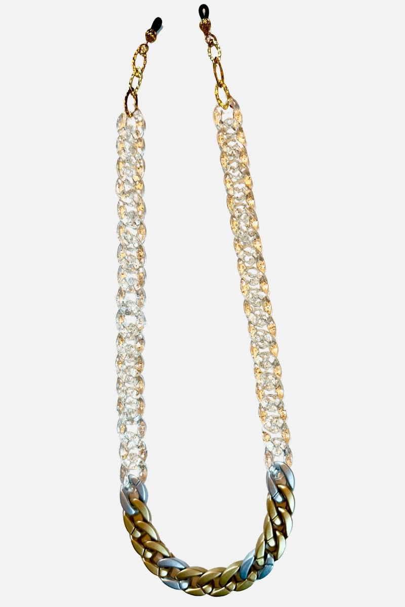 - Matte gold, silver and clear with gold glitter acrylic curb links
