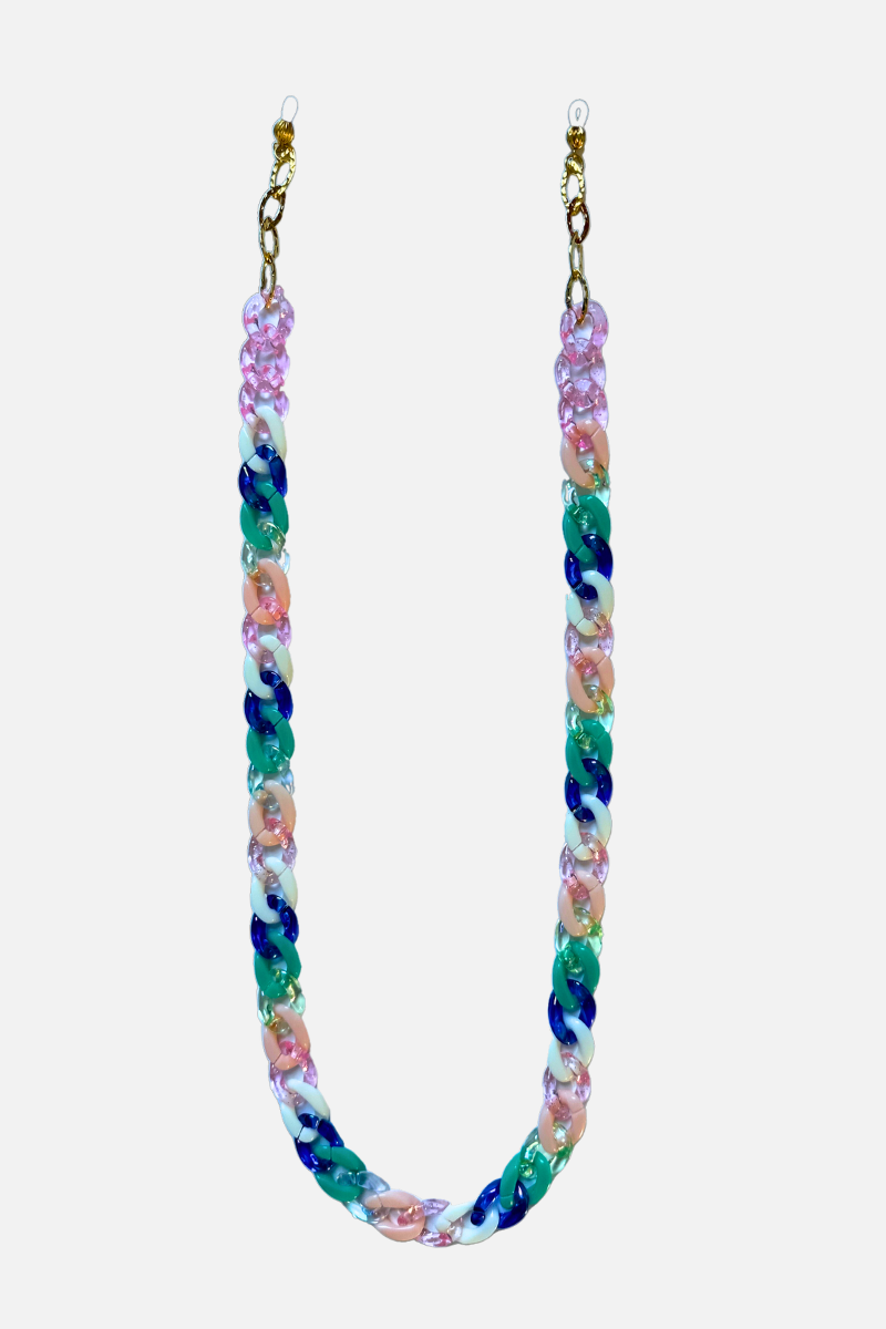 - Peach, cream, pink glitter, sea green, marine and iridescent acrylic curb links