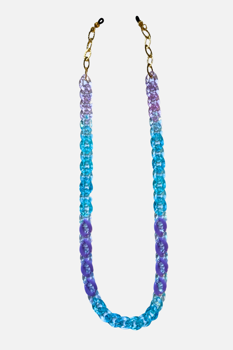 - A mix of glossy and glitter turquoise and purple acrylic curb links